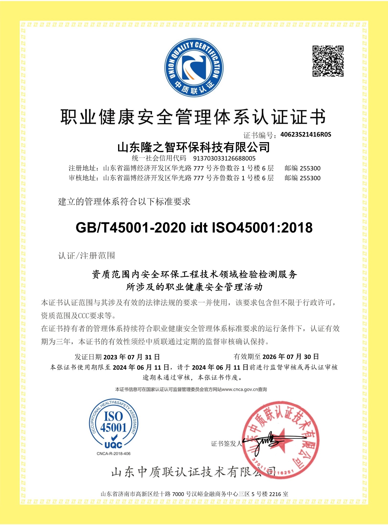 職業(yè)健康安全管理體系認(rèn)證證書(shū)