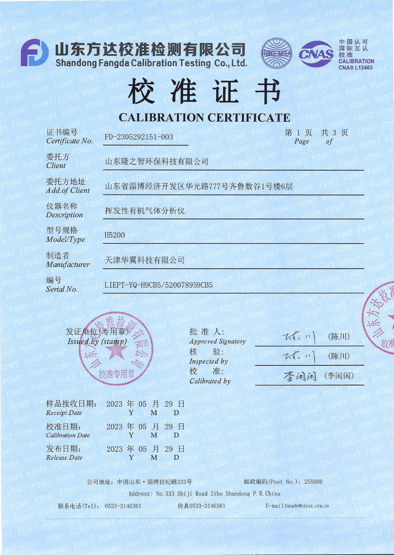 校準(zhǔn)證書(shū)LIEPT-YQ-H9CB5