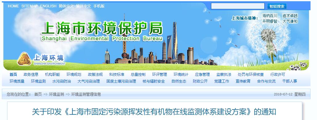 2018/07/18[閱讀原文] 關于印發(fā)《上海市固定污染源揮發(fā)性有機物在線監(jiān)測體系建設方案》的通知 &