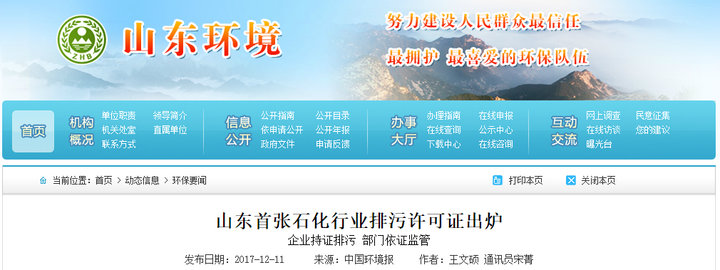 2017/12/13[閱讀原文]山東省東營(yíng)市環(huán)保部門(mén)日前向中國(guó)石油化工股份有限公司勝利油田分公司石油化工總廠(chǎng)頒發(fā)了國(guó)家統(tǒng)一編碼的新版排污許可證,這是山東省頒發(fā)的第一張石化行業(yè)排污許可證,它的核發(fā)標(biāo)志著東營(yíng)市石化行業(yè)排污許可制度改革工作邁出了關(guān)鍵一步。