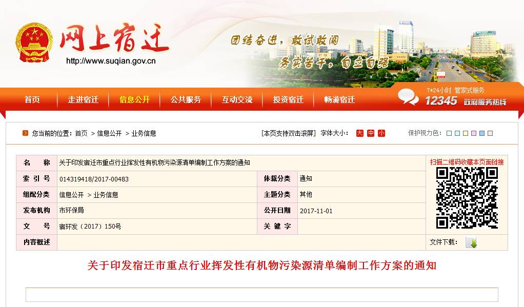 2017/11/06[閱讀原文]關(guān)于印發(fā)宿遷市重點行業(yè)揮發(fā)性有機物污染源清單編制工作方案的通知