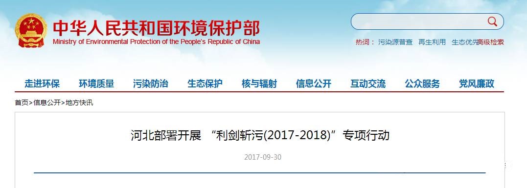 2017/10/10[閱讀原文]自今年10月1日起至明年3月31日,河北省公安廳、省環(huán)保廳、省高級人民法院、省人民檢察院將聯(lián)合在全省范圍內(nèi)組織開展打擊環(huán)境違法犯罪“利劍斬污(2017-2018)”專項行動