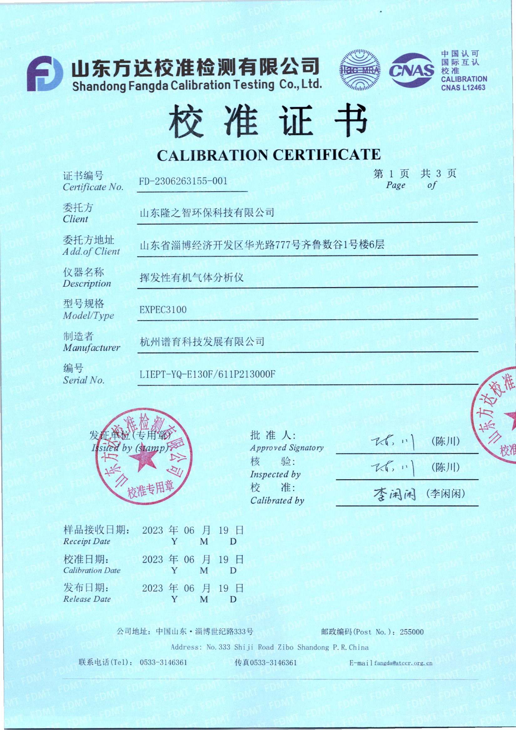 校準(zhǔn)證書(shū)LIEPT-YQ-E130F
