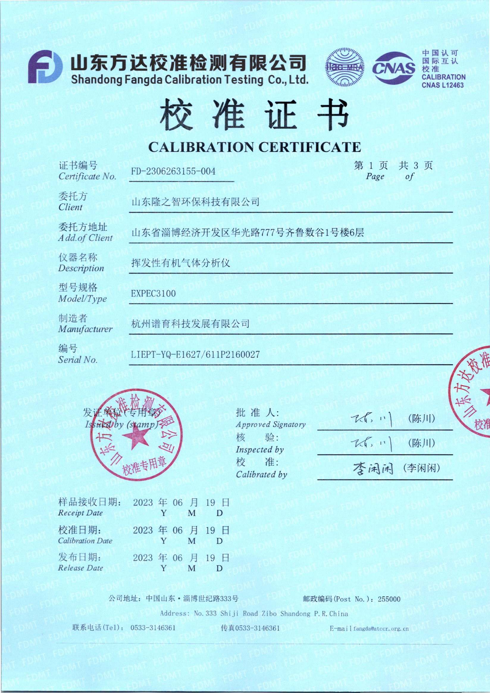 校準(zhǔn)證書(shū)LIEPT-YQ-E1627