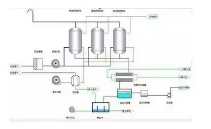 炭吸附法主要用于脂肪和芳香族碳氫化合物、大部分含氯溶劑、常用醇類、部分酮類和酯類等的回收。 當炭吸附達到飽和后,對飽和的炭床進行脫附再生;通入水蒸汽加熱炭層,VOC被吹脫放出,并與水蒸汽形成蒸汽混合物,一起離開炭吸附床,用冷凝器冷卻蒸汽混合物,使蒸汽冷凝為液體。