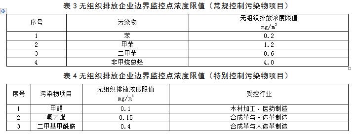 4.4.1無組織排放企業(yè)邊界監(jiān)控點(diǎn)濃度限值執(zhí)行表3、表4的規(guī)定。