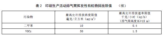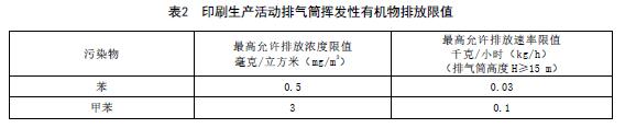 印刷生產(chǎn)活動(dòng)排氣筒揮發(fā)性有機(jī)物排放濃度和排放速率應(yīng)符合表2規(guī)定。