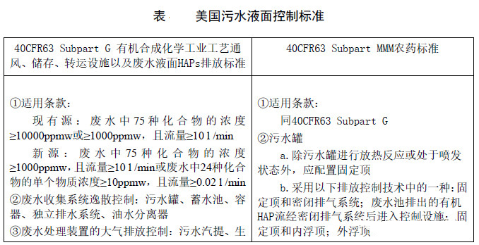 美國除制定控制廢水液面的通用標(biāo)準(zhǔn)外,部分行業(yè)標(biāo)準(zhǔn)根據(jù)自身特點(diǎn),對廢水液面的逸散提出了控制要求,如下表所示: 隆之智環(huán)保 *** www.s223.cn *** 泄漏檢測與修復(fù)(LDAR) VOCs 山東LDAR 一廠一策 一企一策 LDAR,VOCs,泄漏檢測與修復(fù),山東隆之智環(huán)??萍迹瑩]發(fā)性有機(jī)物,VOCs綜合管控,VOCs減排,VOCs治理,大氣VOCs在線監(jiān)測,排污許可證,揮發(fā)性有機(jī)物,環(huán)境保護(hù)稅,排放標(biāo)準(zhǔn),山東濰坊 |