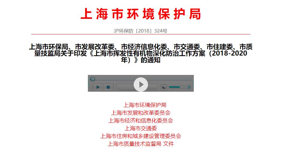 上海市揮發(fā)性有機(jī)物深化防治工作方案(2018~2020年)