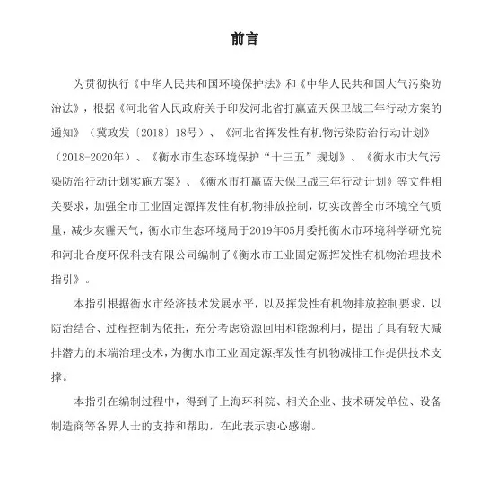 衡水市工業(yè)固定源VOCs治理技術(shù)指南