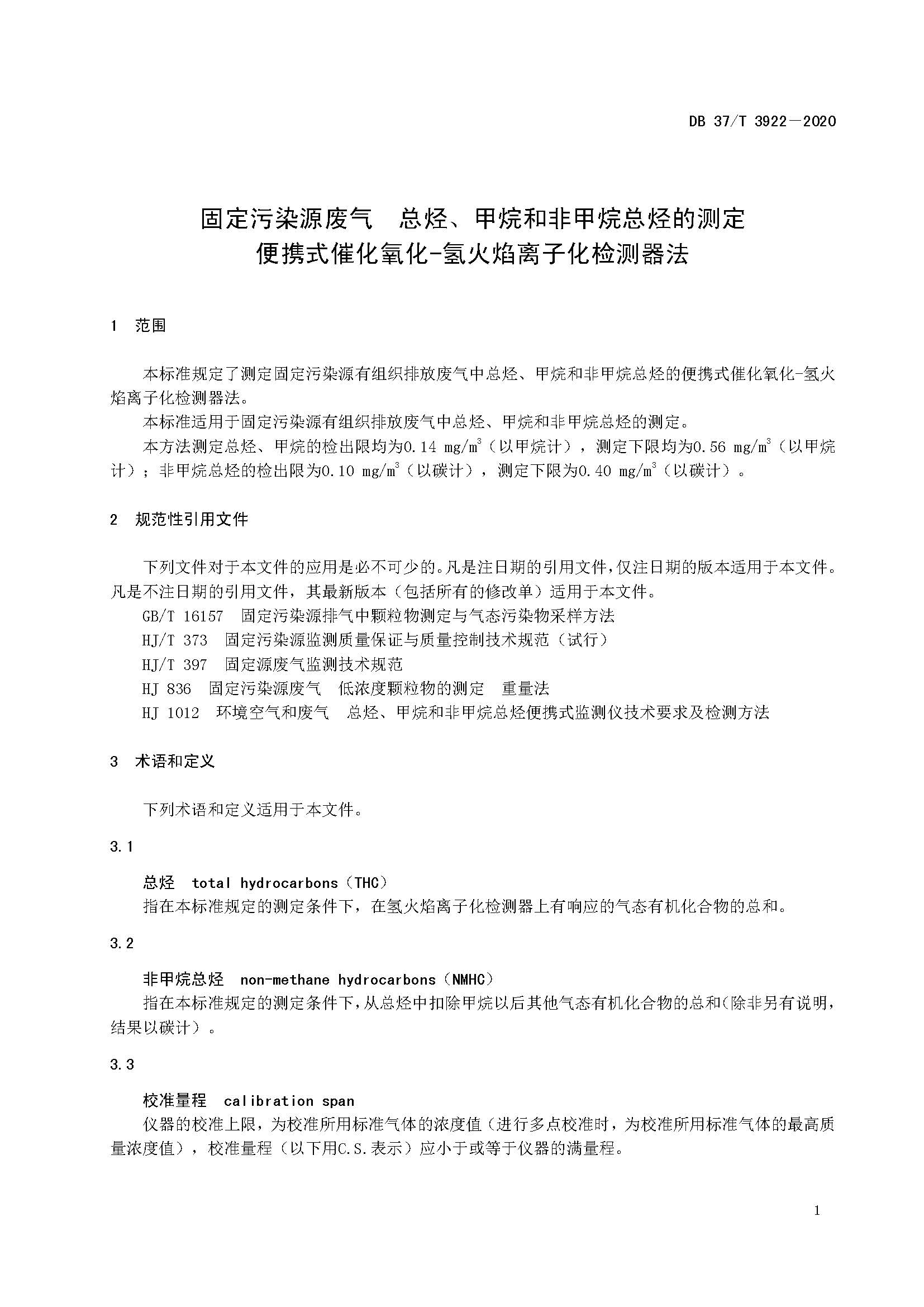 由省生態(tài)環(huán)境廳組織編制的《固定污染源廢氣 總烴、甲烷和非甲烷總烴的測定 便攜式催化氧化-氫火焰離子化檢測器法》(DB37/T 3922-2020)已由省市場監(jiān)督管理局發(fā)布,將于2020年5月3日起實(shí)施。
