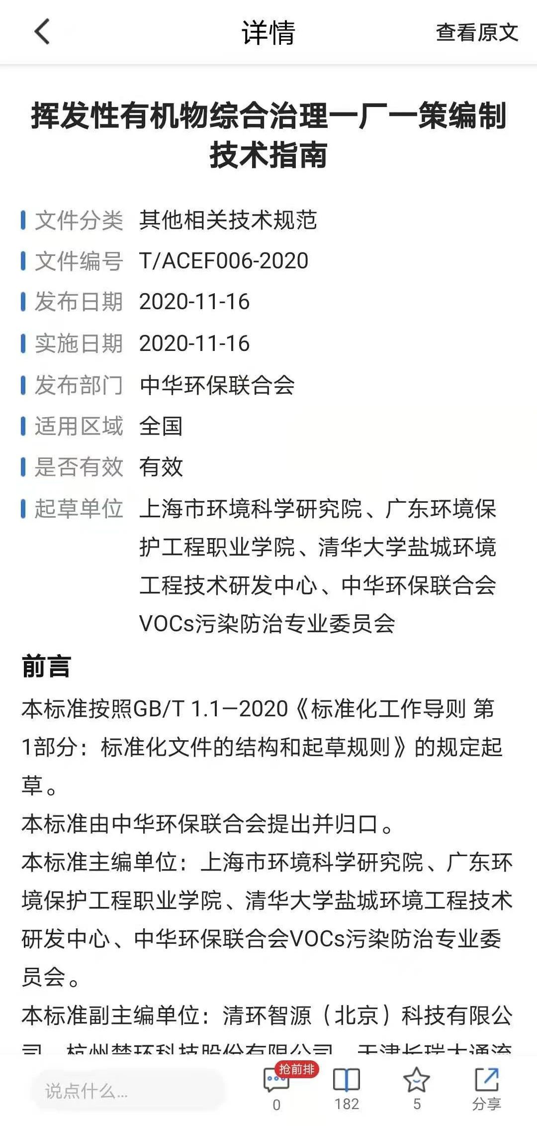 | 隆之智田總參與《揮發(fā)性有機(jī)物綜合治理一廠一策編制技術(shù)指南》起草工作 | |
