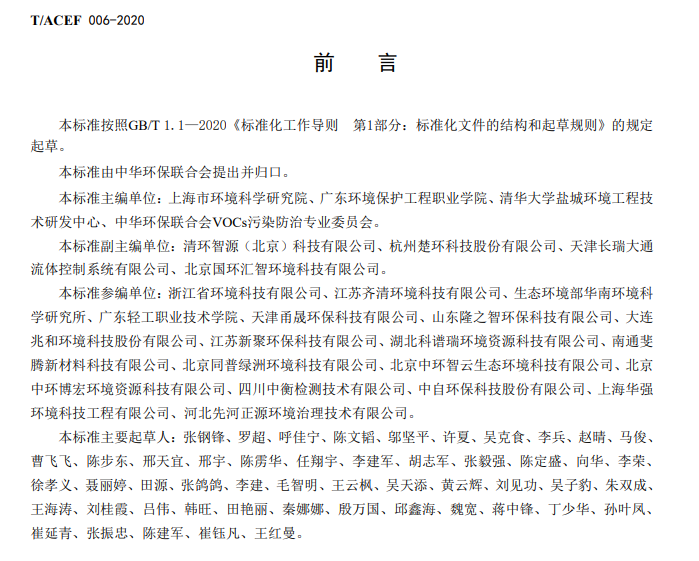 2019年6月26日,生態(tài)環(huán)境部印發(fā)《重點(diǎn)行業(yè)揮發(fā)性有機(jī)物綜合治理方案》(環(huán)大氣〔2019〕53號),要求重點(diǎn)區(qū)域應(yīng)組織本地VOCs排放量較大的企業(yè)開展“一廠一策”方案編制工作,2020年6月底前基本完成。 2020年6月23日,生態(tài)環(huán)境部印發(fā)《2020年揮發(fā)性有機(jī)物治理攻堅(jiān)方案》(環(huán)大氣〔2020〕33號),再次要求排放量大,排放物質(zhì)以烯烴、芳香烴、醛類等為主的企業(yè)制定“一企一策”治理方案。 日前,《揮發(fā)性有機(jī)物綜合治理一廠一策編制技術(shù)指南》(T/ACEF 006-2020)于2020年11月16日經(jīng)中華環(huán)保聯(lián)合會(huì)批準(zhǔn)發(fā)布,自2020年11月18日起實(shí)施。 本標(biāo)準(zhǔn)適用于工業(yè)企業(yè)開展揮發(fā)性有機(jī)物綜合治理一廠一策的編制工作。 本標(biāo)準(zhǔn)主要技術(shù)內(nèi)容包括:基本要求、VOCs產(chǎn)生與排放、擬實(shí)施的綜合治理措施、 合規(guī)性和減排績效分析。 本標(biāo)準(zhǔn)主編單位:上海市環(huán)境科學(xué)研究院、廣東環(huán)境保護(hù)工程職業(yè)學(xué)院、清華大學(xué)鹽城環(huán)境工程技術(shù)研發(fā)中心、中華環(huán)保聯(lián)合會(huì)VOCs污染防治專業(yè)委員會(huì)。 本標(biāo)準(zhǔn)適合需要編制“一廠一策”方案的企業(yè)環(huán)保管理人員和第三方環(huán)保咨詢機(jī)構(gòu)(環(huán)保管家)技術(shù)人員學(xué)習(xí)參考。 ![]() 全國團(tuán)體標(biāo)準(zhǔn)公示平臺查詢鏈接:http://www.ttbz.org.cn/Pdfs/Index/?ftype=st&pms=40166