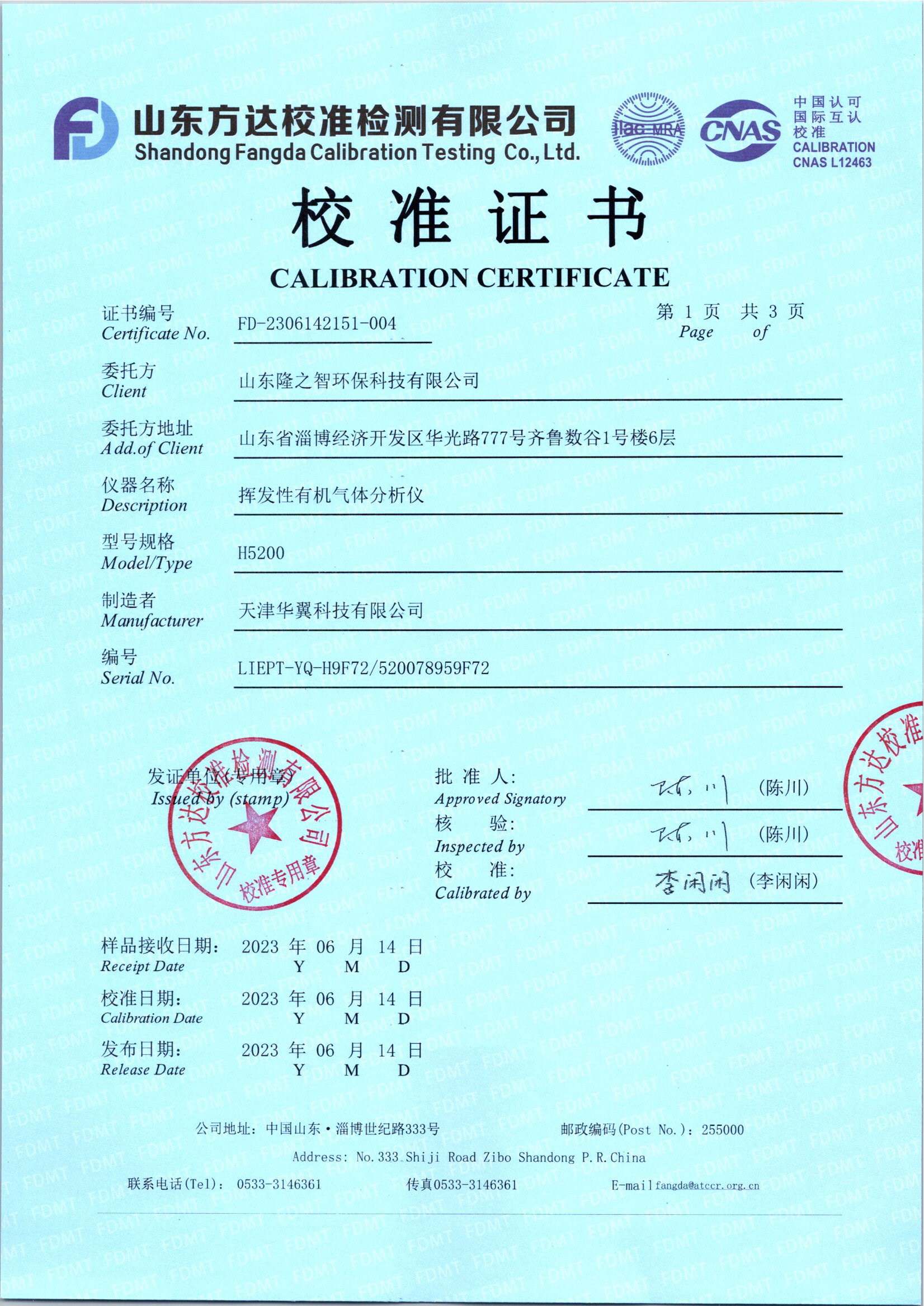 校準(zhǔn)證書LIEPT-YQ-H9F72